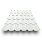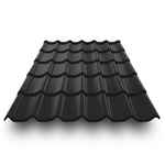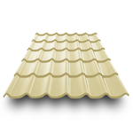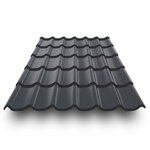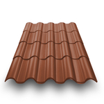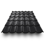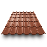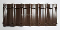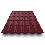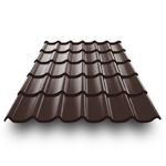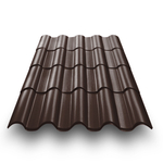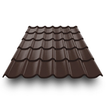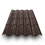 Имеет красивый крупный черепичный рисунок. Имитирует натуральную кровлю. Имеет повышенную несущую способность. Изготавливается в покрытиях полиэстер, протэкт + в очень красивом и модном матовом покрытии ВИМАТТ.